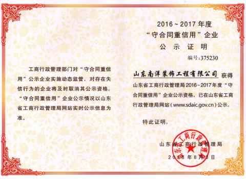 诚信建设示范企业