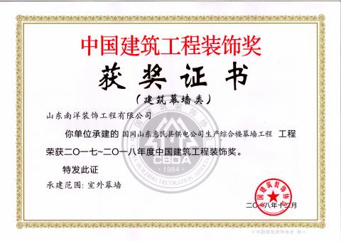 中国建筑工程装饰奖:国网山东惠民县供电公司生产综合楼幕墙工程