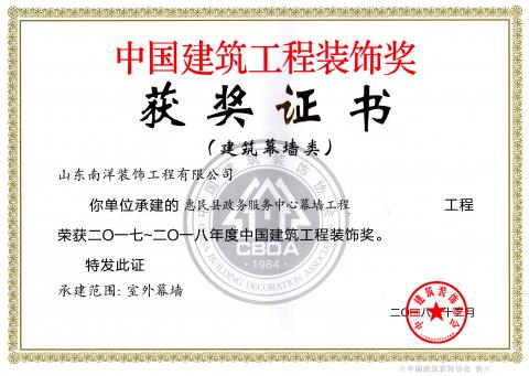 中国建筑工程装饰奖—惠民县政务服务中心幕墙工程
