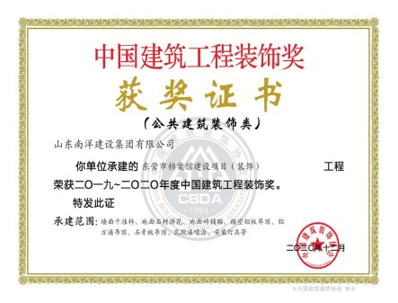 中国建筑工程装饰奖—东营市档案馆建设项目装饰工程