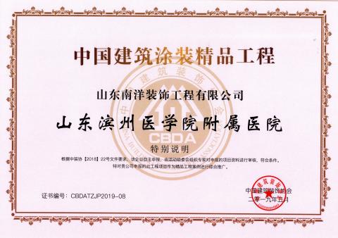 中国建筑涂装精品工程—山东滨州医学院附属医院