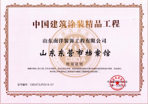 中国建筑涂装精品工程—东营市档案馆建设项目装饰工程