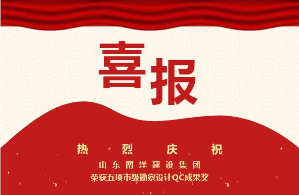 根据滨州市勘察设计协会、滨州市住房和城乡建设局工会工作委员会举办2024年度滨州市工程勘察设计质量管理小组活动成果竞赛要求,山东南洋建设集团经提报审查,荣获五项市级勘察设计QC成果奖。